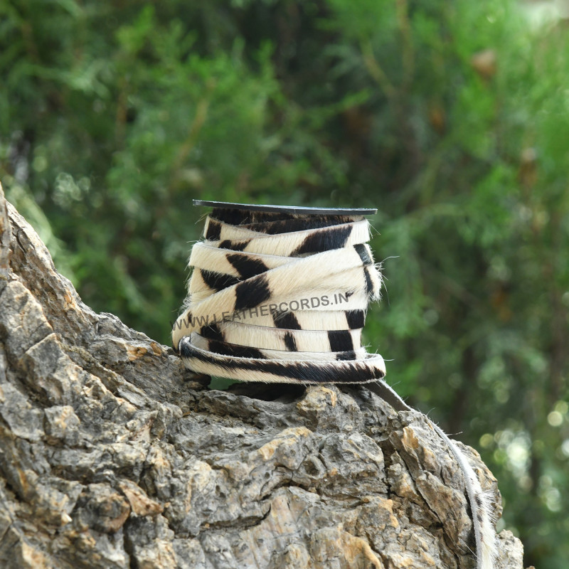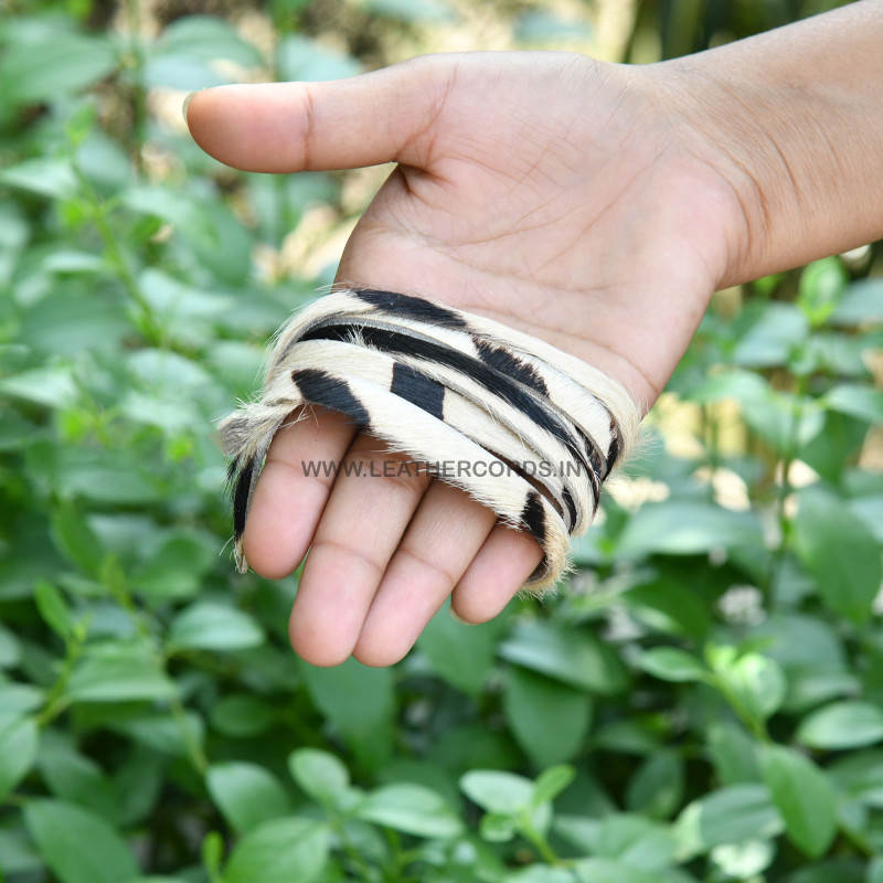 Hair-on printed flat leather cord features natural goat hair on its surface, offering a unique texture. This versatile cord is available in lengths of 50-100 meters, with a width of 10mm and a thickness of 1.5mm. Custom orders are welcomed, allowing artisans to tailor the cord to their specific project needs. The combination of goat leather and distinctive hair-on detailing makes it an excellent choice for creating bespoke handmade jewelry and craft items.